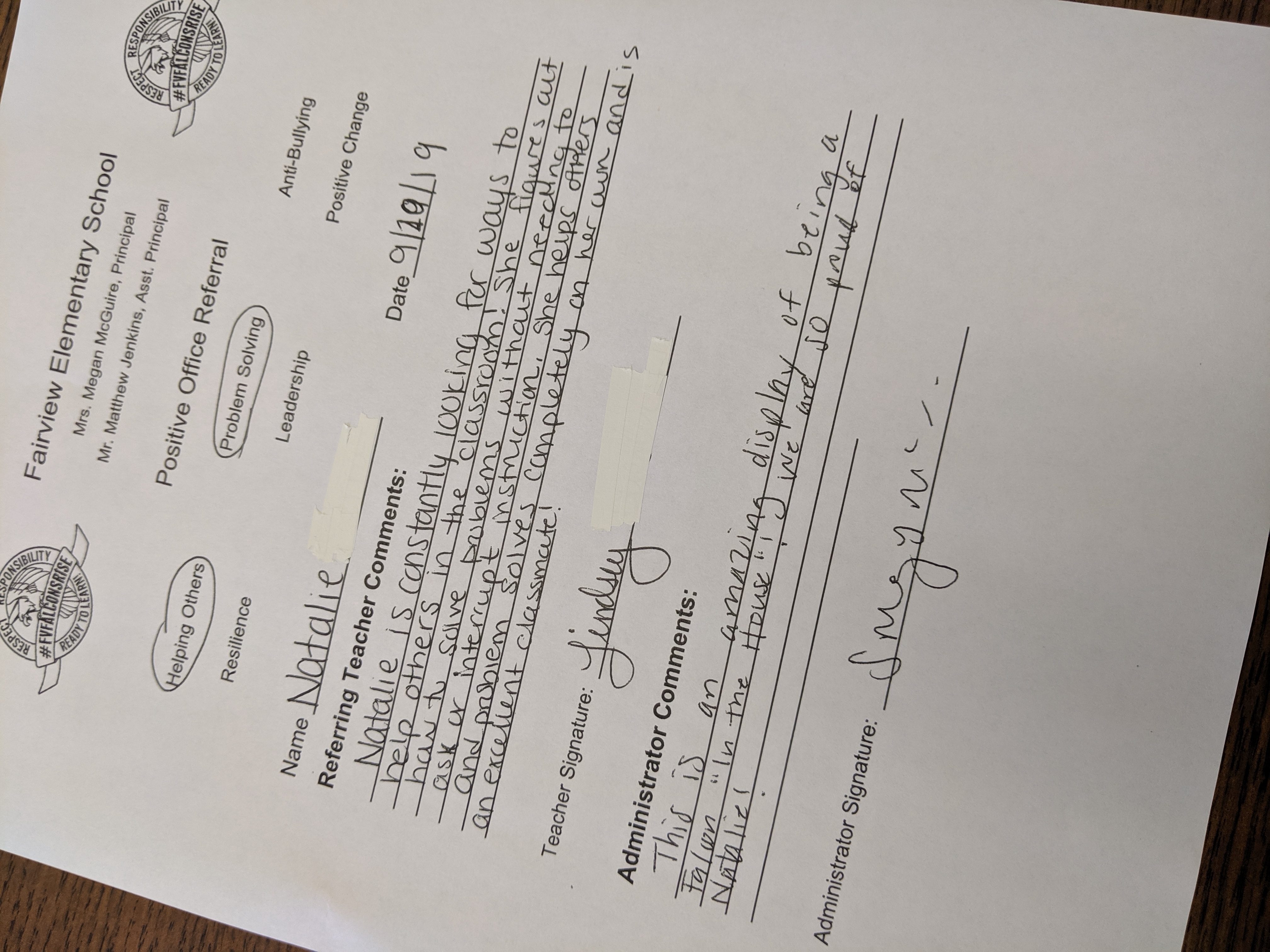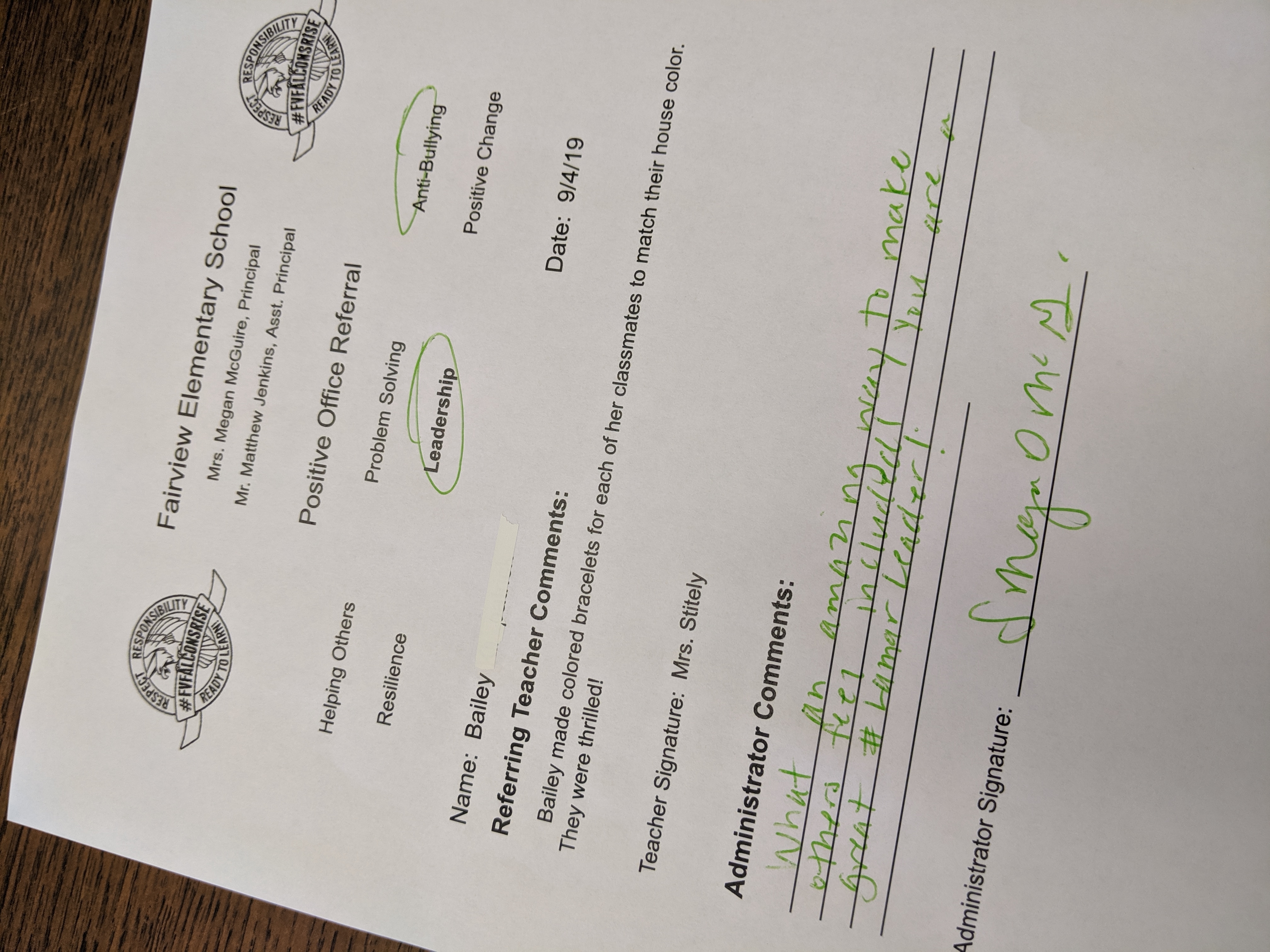 Falcon Learners are showing their project TEAM foundations and getting positive office referrals from their teachers! Check out these two falcons who demonstrated #HarperHelpingOthers, #PhiloProblemSolving, #AmeliaAntiBullying and #LamarLeadership! Way to go Bailey and Natalie! Keep up the good work! #6Houses1Nest